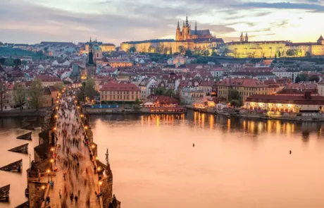 Today all day walking in/around the City of Prague, Prague, capital city of the Czech Republic, is bisected by the Vltava River. Nicknamed “the City of a Hundred Spires,” it’s known for its Old Town Square, the heart of its historic core, with colorful baroque buildings, Gothic churches and the medieval Astronomical Clock, which gives an animated hourly show. Completed in 1402, pedestrian Charles Bridge is lined with statues of Catholic saints. Evening at leisure overnight in hotel.